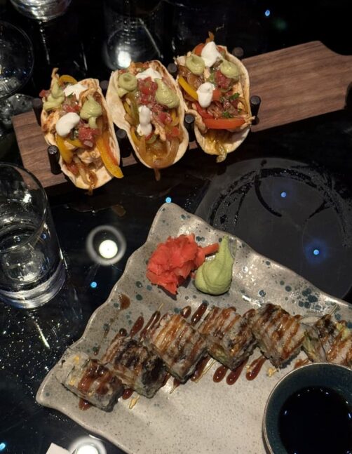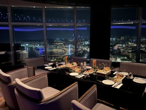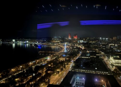 Après avoir découvert toutes ces adresses traditionnelles, si vous avez envie d’un endroit un peu plus moderne et international, direction le dernier étage du Hilton Baku. Vous y trouverez un bar panoramique tournant ! L’ambiance est sympa pour boire un verre ou manger sur le pouce en profitant de la vue qui défile devant vous. Leur carte est très éclectique : je me suis laissée tenter par des sushis !