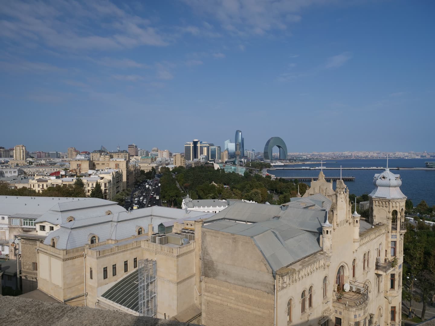 L’un des meilleurs endroits pour observer les Flame Towers de près, c’est le Highland Park, un parc haut perché, qui domine la ville. L’esplanade du parc offre aussi de très belles vue sur la Vieille Ville et sur la mer Caspienne. L’endroit est particulièrement populaire au coucher du soleil !