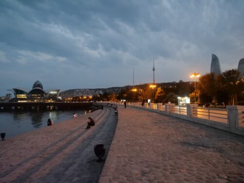 Au départ du Highland Park, la balade sur le Baku Boulevard jusqu’au Bar 360 de l’hôtel Hilton (voir plus bas) est une balade très agréable au coucher de soleil et en début de soirée, pour voir les Flame Towers illuminées.