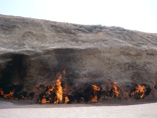 En effet, à Yanardag, à environ 30 minutes de Bakou, des « flammes éternelles » brûlent continuellement depuis au moins le premier siècle de notre ère ! On a essayé d’éteindre cette « montagne de feu » à plusieurs reprises (notamment durant la Seconde Guerre Mondiale, durant laquelle celles-ci représentaient un risque en cas d’attaque sur Baku), en vain : aucune pluie, aucun vent ne peut arrêter ces flammes !
