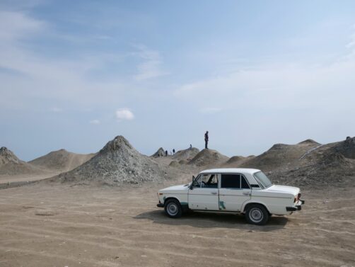 C’est ici que se trouve la plus grande concentration de volcans de boue au monde ! On se croirait sur Mars, et ce n’est pas qu’une impression : d’après la NASA, ces volcans sont très similaires aux plateaux de la planète Mars. Pour y arriver, un peu de hors piste est nécessaire. Des 4×4 et… de vieilles Lada (oui !) attendent sur le bord de la route pour vous y emmener (c’est inclus quand vous participez à une excursion organisée).