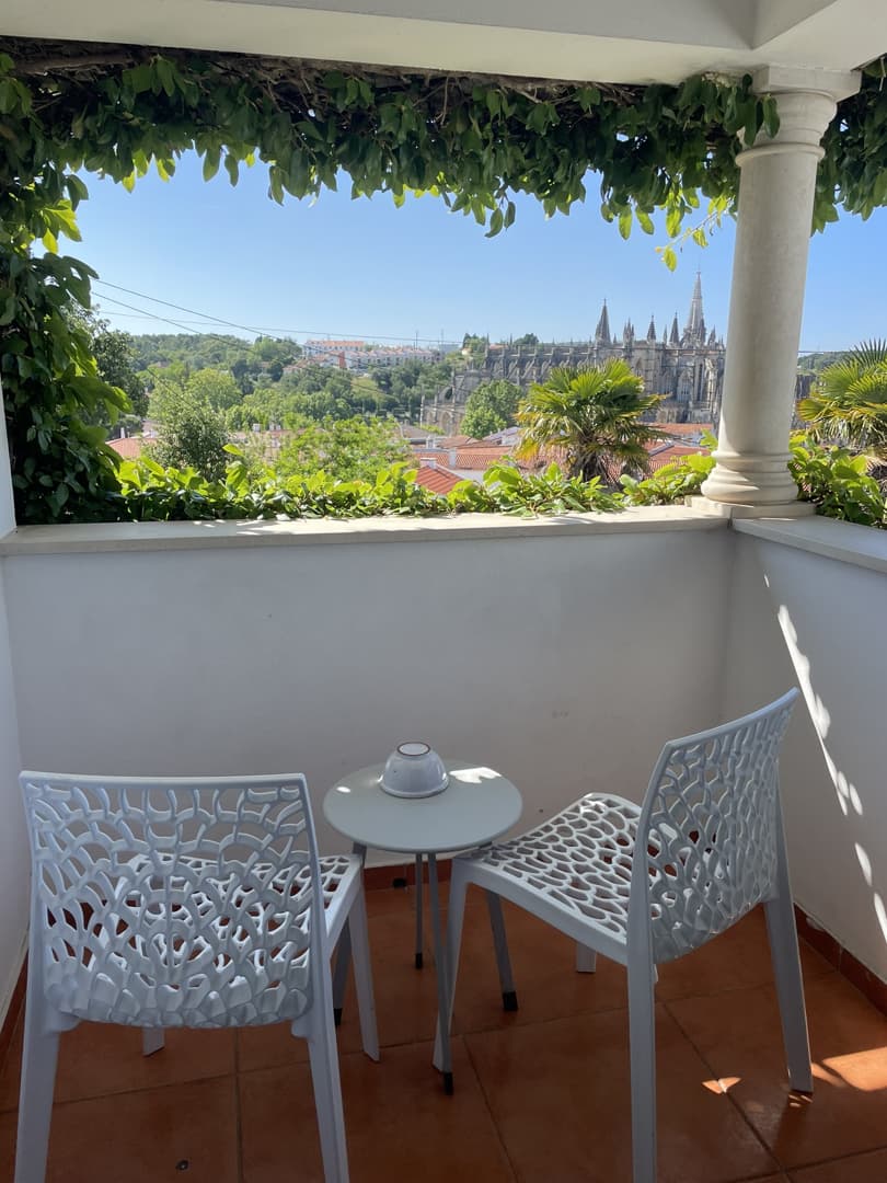 J’ai eu la chance de dormir dans l’une des chambres possédant une jolie terrasse ombragée avec une vue imprenable sur le Monastère de Batalha ! Je dois dire que c’était l’endroit parfait pour prendre l’apéro en fin de journée (d’autant plus que l’hôtel possède un honesty bar).