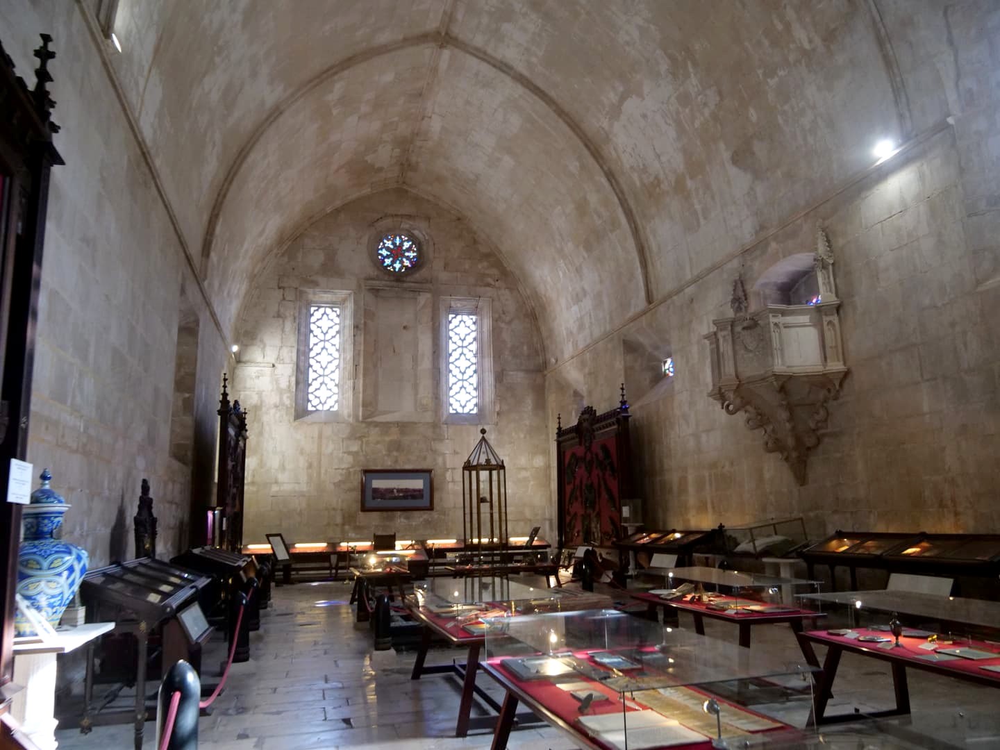 Ne manquez pas également de vous balader dans les cloîtres. Des deux cloîtres qui se trouvent sur ce site, le plus photogénique est certainement le Cloître Royal (Claustro Real), dont les détails de style manuélin rappellent le Monastère de Jeronimos à Belem. Autour du cloître, on peut aussi explorer plusieurs pièces, dont l’ancien réfectoire, et la Salle du Chapitre (voir ci-dessous).