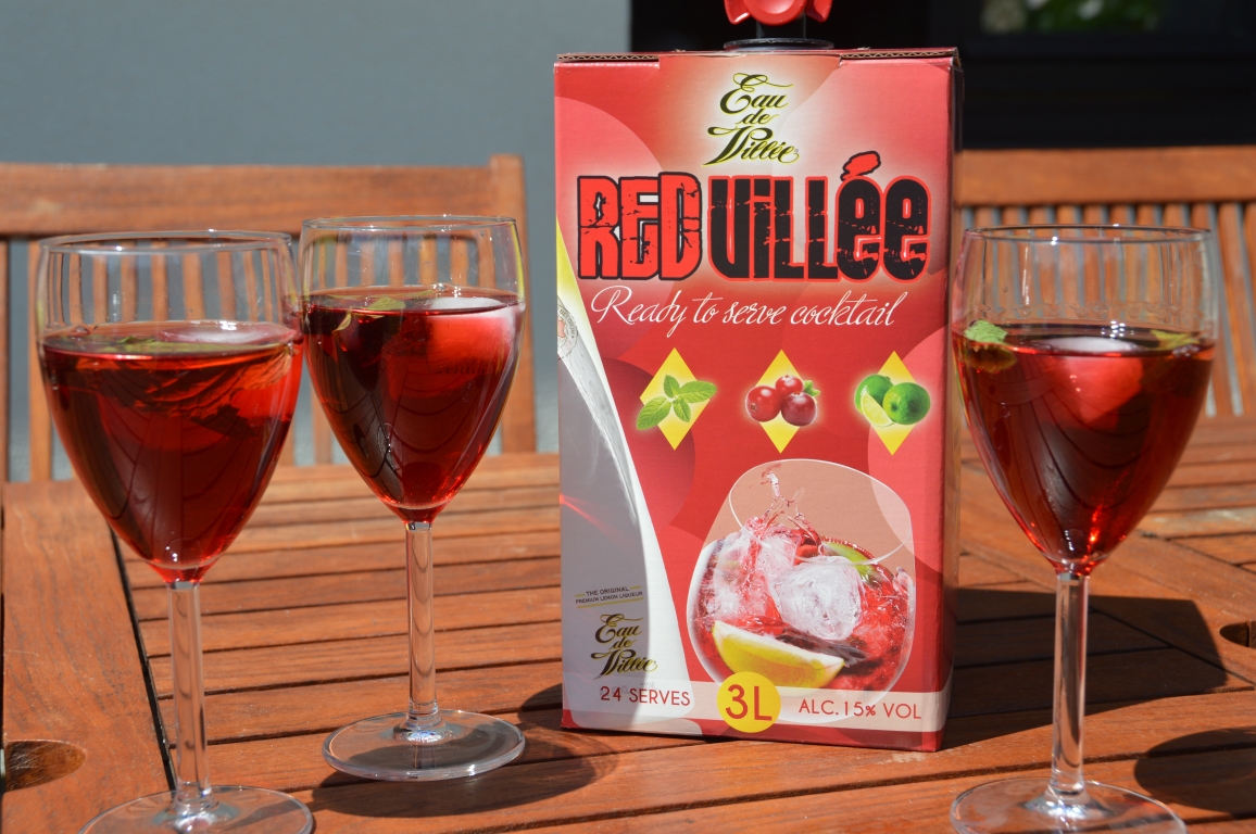 La recette du RedVillée ? Un mélange d’Eau de Villée, de jus de cannerberge, de citron vert et de menthe fraîche (et 15% d’alcool au total). Le cubis de 3 litres étant vendu à 35€, il vous en coûtera moins d’1,5€ par verre.