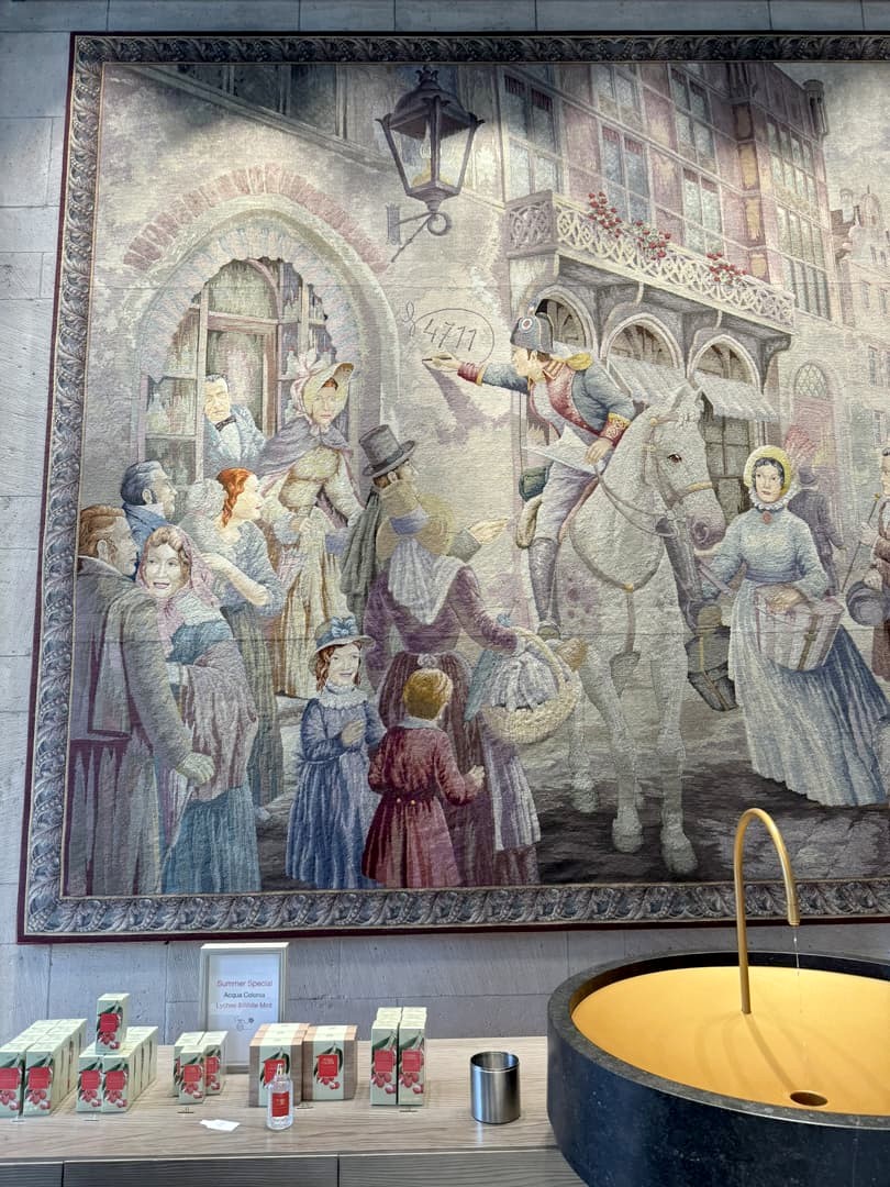 Si vous n’arrivez pas à avoir une place pour la visite (souvent complète en français), la boutique Dufthaus 4711 vous permettra tout de même d’admirer une collection de flacons historiques d’eau de Cologne, gratuitement.