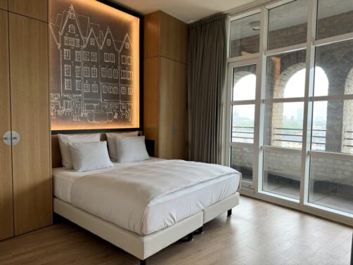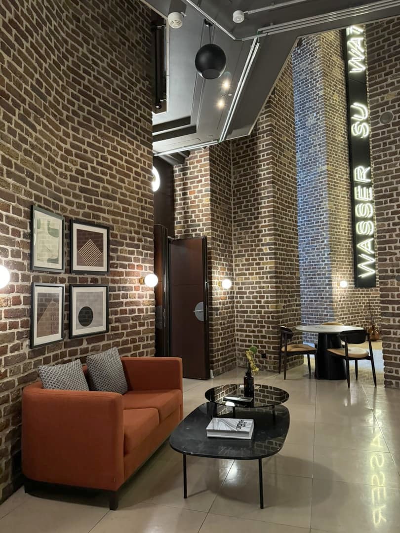 Si cette seconde adresse est un peu plus classique niveau déco, c’est surtout son cadre qui la rend unique : en effet, le Wasserturm Hotel (Curio Collection by Hilton) se trouve comme son nom l’indique… dans un ancien château d’eau monumental ! Ma chambre se trouvait dans l’un des étages élevés, avec une terrasse partagée (qui fait tout le tour du bâtiment) avec une vue panoramique sur Cologne. Même si je n’ai pas eu trop de chance avec la météo ce jour-là, j’ai adoré le cadre ! La chambre était également très spacieuse, et bien calme.