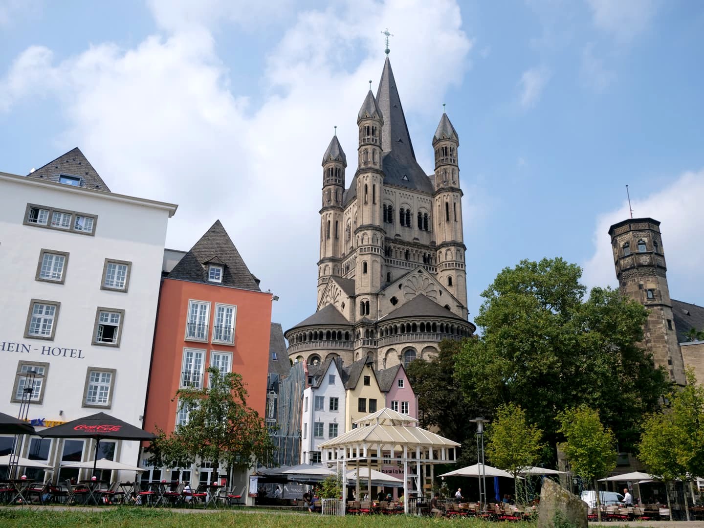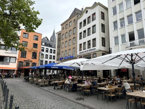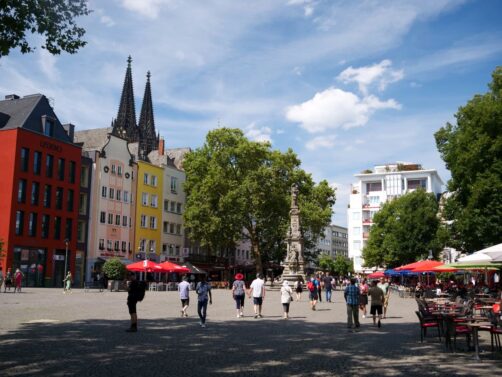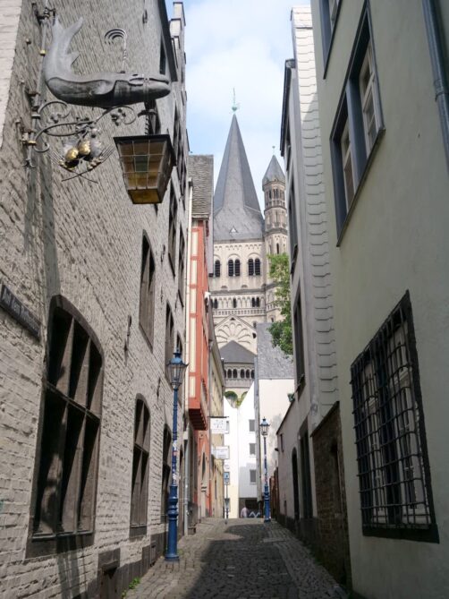 Derrière la Cathédrale de Cologne, s’étend la vieille ville ou Altstadt de Cologne. C’est la partie la plus animée de la ville (l’animation se concentrant autour des places Alter Markt et Heumarkt), mais aussi celle où vous trouverez en vous éloignant un peu des axes principaux le plus de petites ruelles pittoresques, des maisons colorées, des petites places agréables.