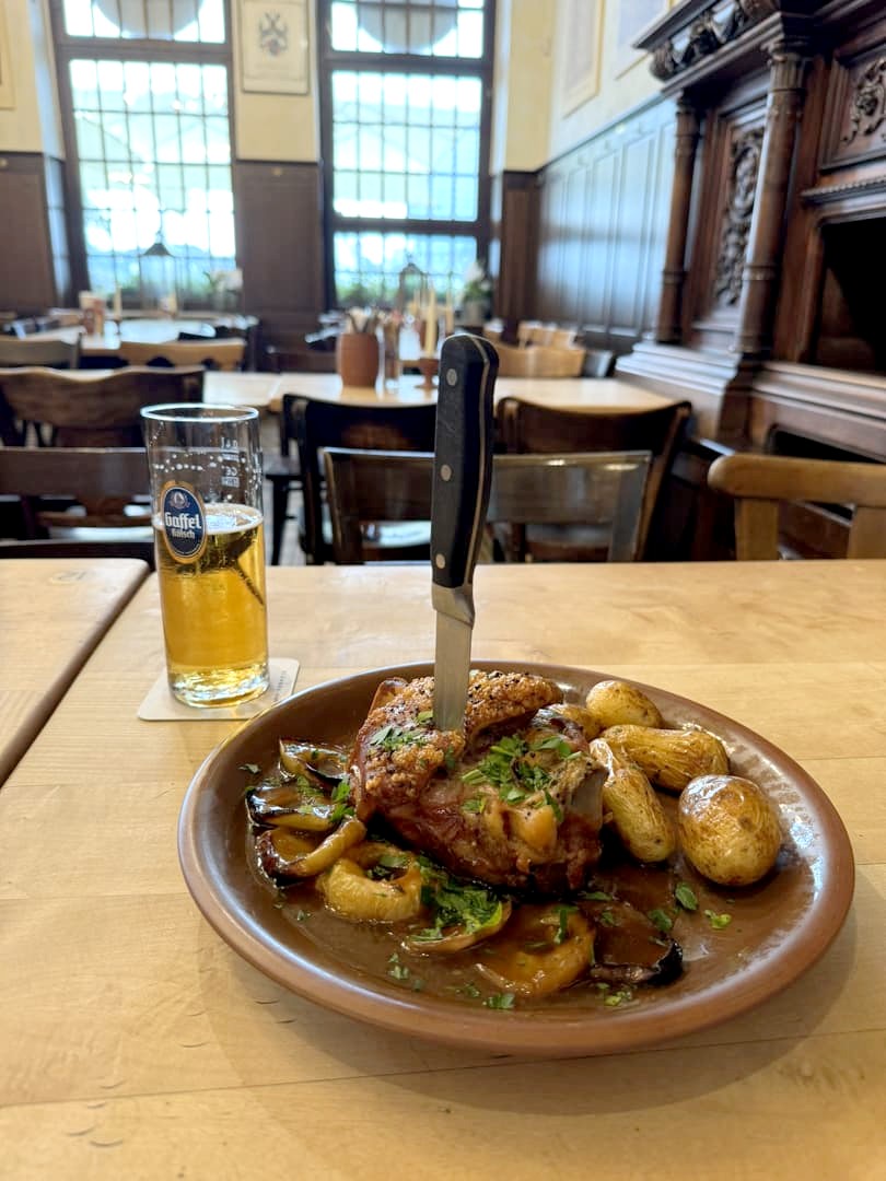 Haxenhaus est l’une des grandes institutions de Cologne. Situé dans un bâtiment historique sur les bords du Rhin, ce restaurant populaire est spécialisé dans les plats à base de jarrets de porc (Haxe en allemand), une des grandes spécialités de la région de Cologne. Vous en trouverez des dizaines de variantes à la carte, des préparations les plus traditionnelles, à des recettes revisitées ou de saison. Les jarrets sont parfaitement rôtis et bien croustillants, c’est un délice. Attention à venir le ventre bien vide par contre, car c’est très copieux !