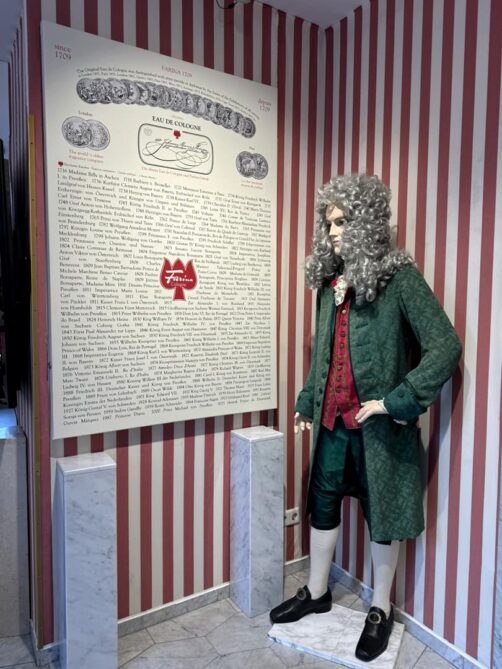 Malheureusement, on ne peut pas prendre de photo durant la visite guidée (obligatoire), et l’exposition est vraiment très vieillotte, mais si vous aimez le monde du parfum, la visite reste remplie de chouettes anecdotes historiques, et vous repartirez avec une mini eau de Cologne. Et c’est fou de se dire que l’on peut toujours porter la même eau de Cologne qu’ont pu porter Napoléon ou Louis XV !