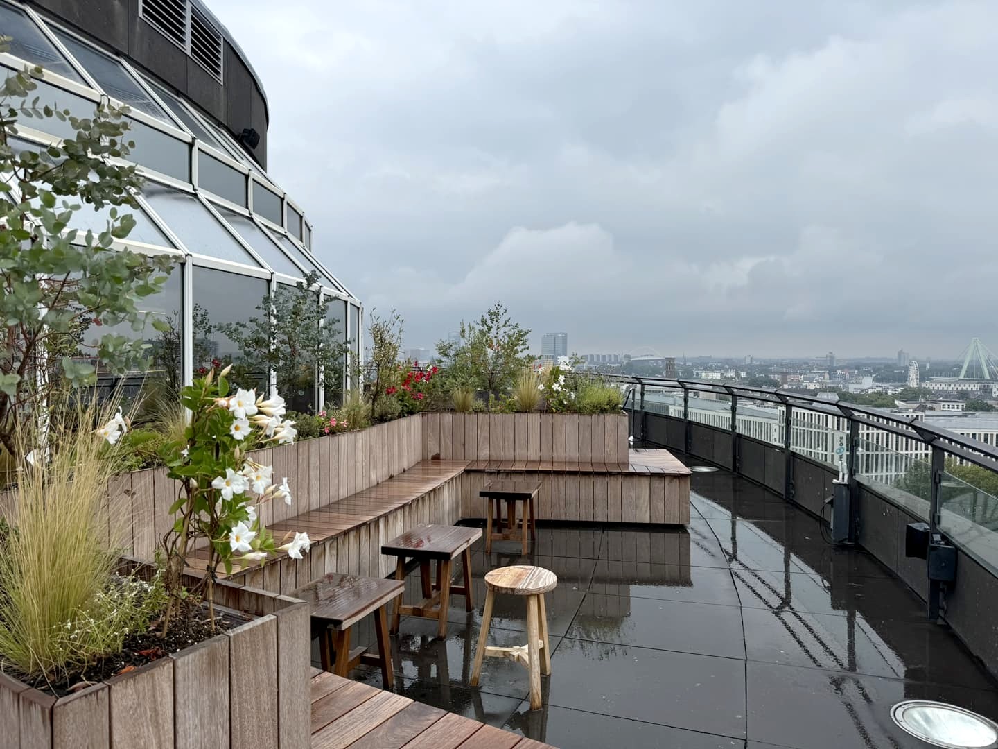 Cet hôtel possède lui aussi un rooftop bar avec une terrasse panoramique à quasi 360 degrés sur Cologne. Comme au 25Hours, ce bar est évidemment accessible également si vous ne logez pas à l’hôtel. Il faudra donc que j’y retourne pour y admirer le coucher du soleil lors d’un prochain voyage. Les cocktails sont pour moi un peu moins réussis, mais le service est très sympa.
