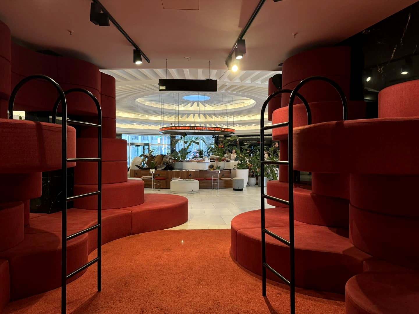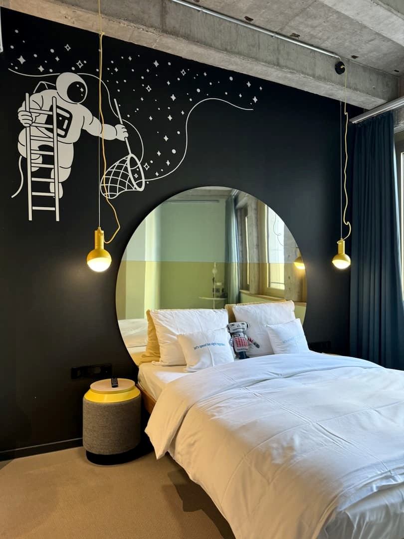 Le 25Hours Hotel The Circle est probablement l’hôtel à la décoration la plus originale à Cologne. J’adore vraiment cette chaîne d’hôtels, dont chaque établissement possède une thématique particulière, avec une déco toujours très réussie. Le thème du 25 Hours de Cologne tourne autour de la conquête spatiale, avec un côté très rétro-futuriste qui se marie parfaitement à l’imposant bâtiment des années 60 qu’il occupe. Dès qu’on en pousse les portes, on a une vraie impression de voyage dans le temps. J’adore !