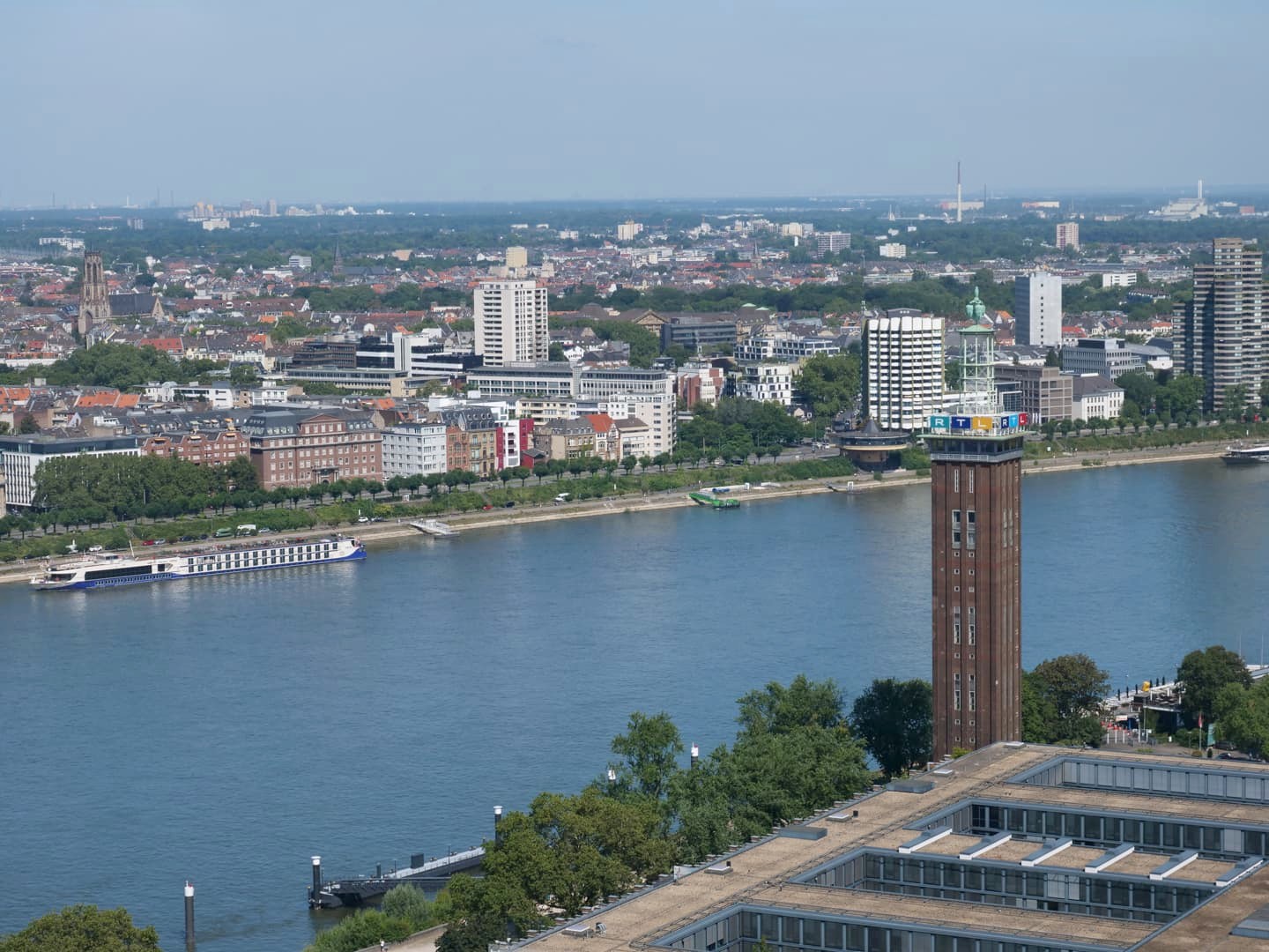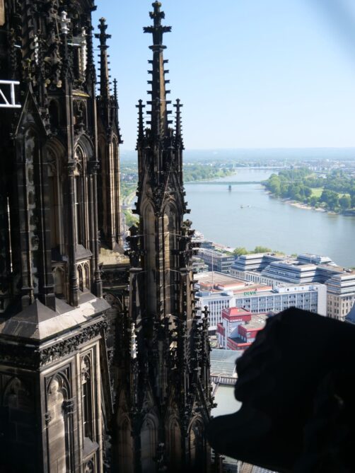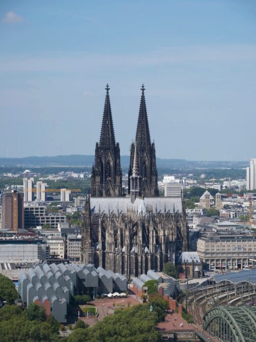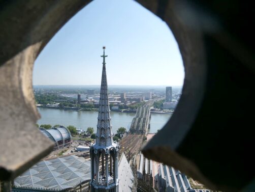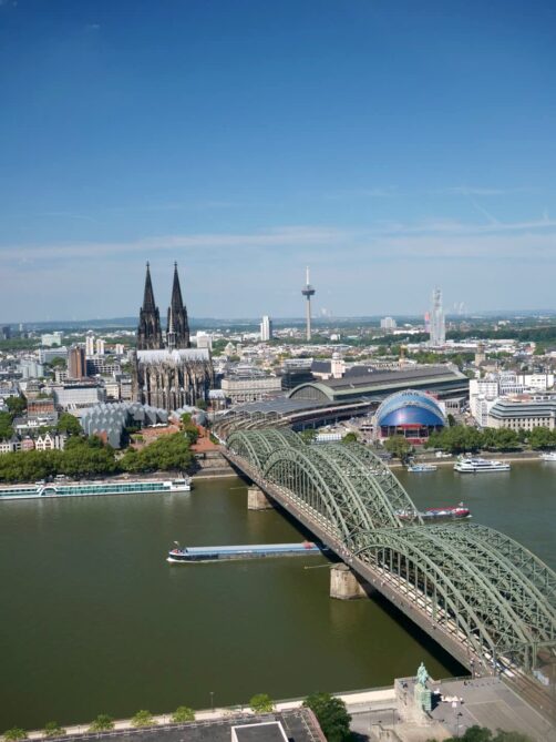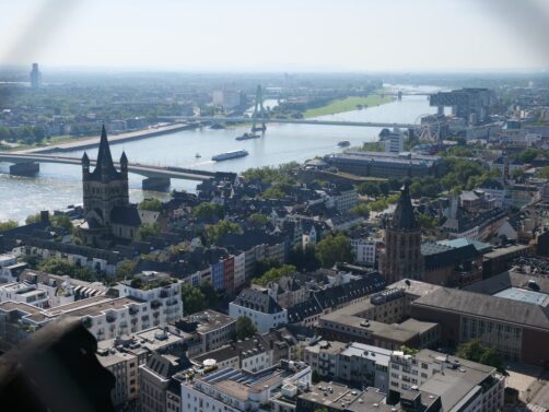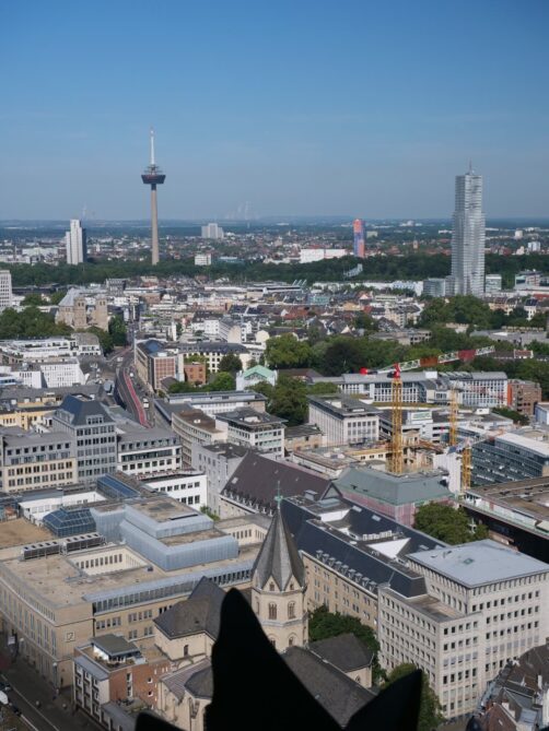 Face à la Cathédrale de Cologne, de l’autre côté du Rhin, se dresse une grande tour contemporaine au sommet de laquelle se trouve une plateforme d’observation panoramique; à plus de 100 mètres de hauteur. C’est pour moi le plus beau panorama sur la ville, puisqu’il permet de voir également la cathédrale. L’accès à cette plateforme payante se fait rapidement par ascenseur. En saison, il y a un petit bar ouvert au sommet.
