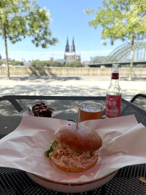 Le Stiky Fingers est le petit restaurant en self-service bien sympathique de l’hôtel Hyatt Regency Köln. J’y suis surtout allée pour la vue superbe sur le Rhin et la Cathédrale que l’on a depuis leur terrasse ombragée. Et finalement, j’ai été agréablement surprise par leur carte dont les prix sont vraiment abordables vu le cadre. C’est l’endroit parfait pour profiter des belles journées d’été en regardant les bateaux passer sur le Rhin…