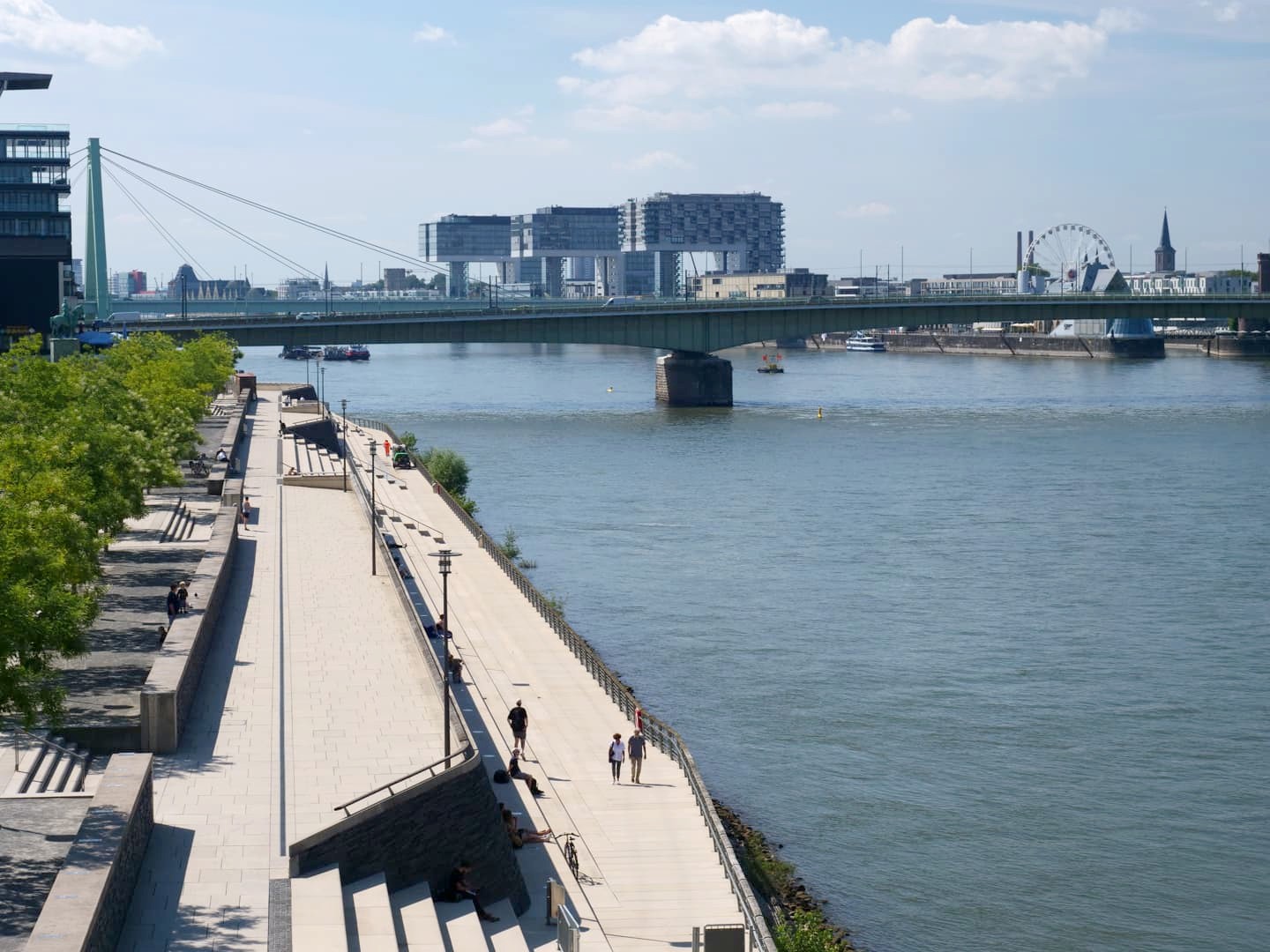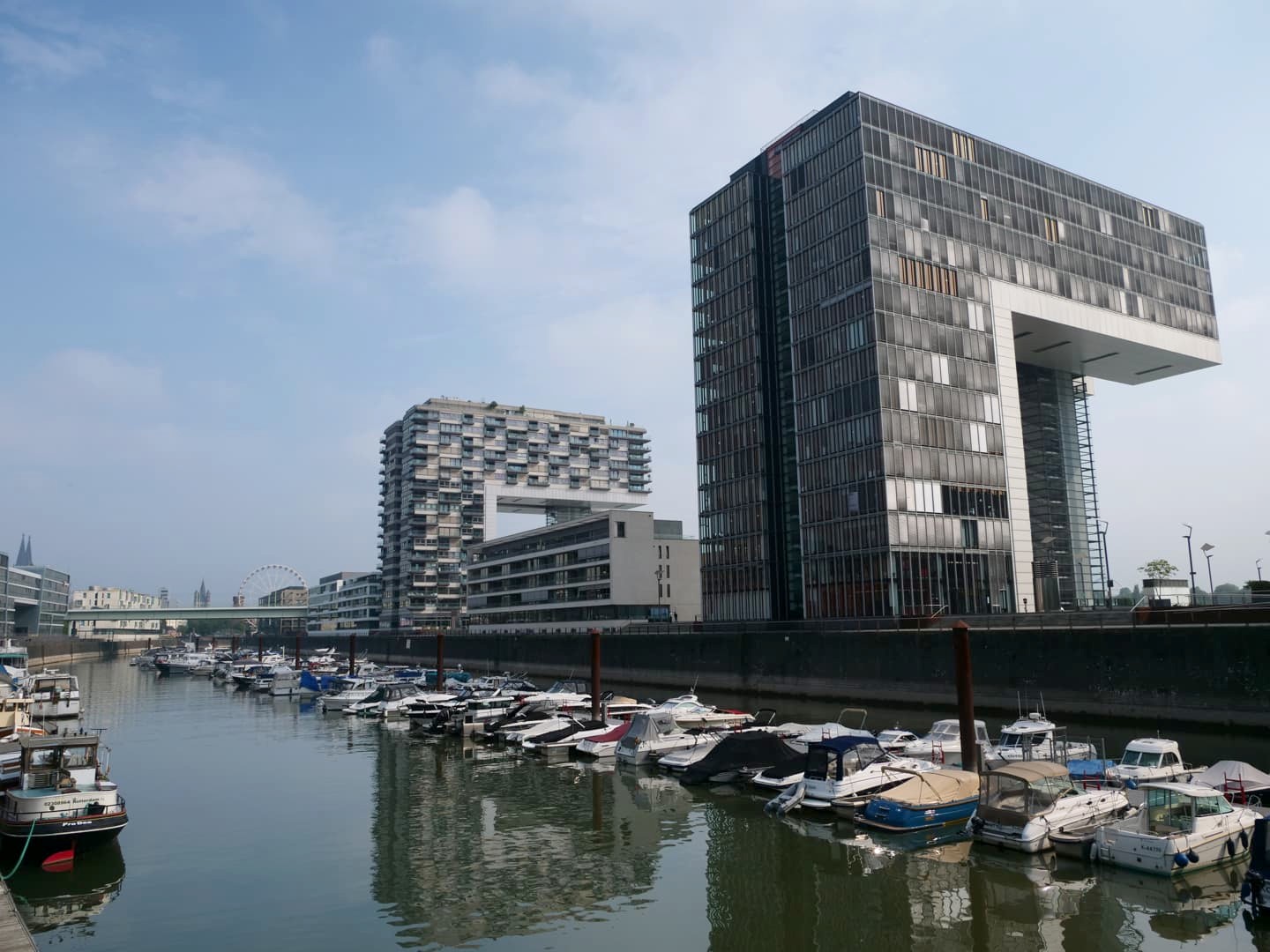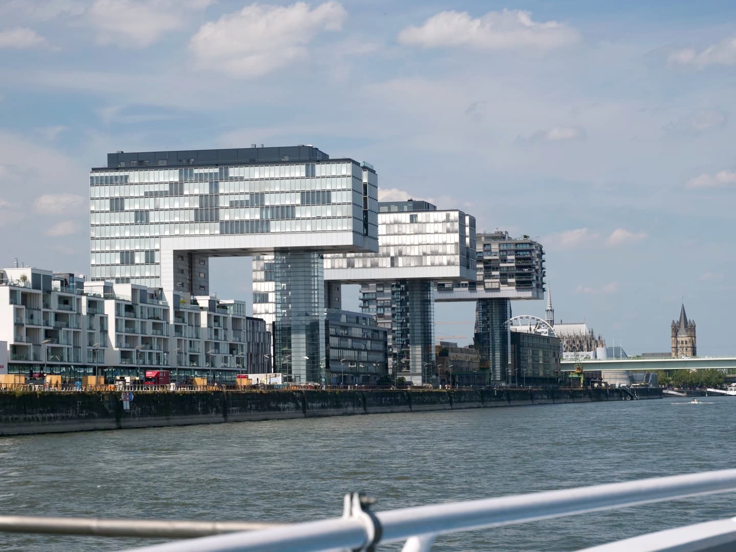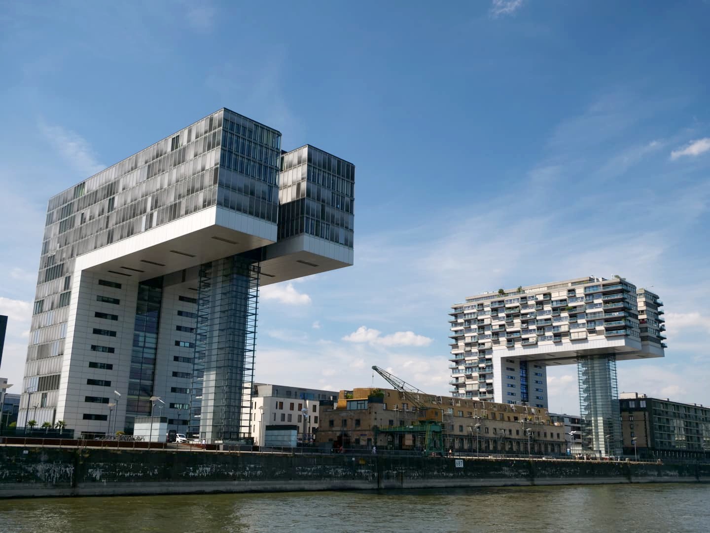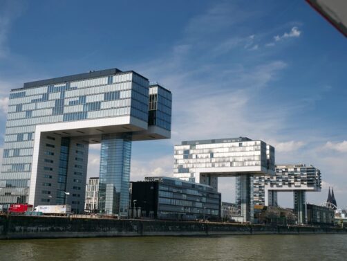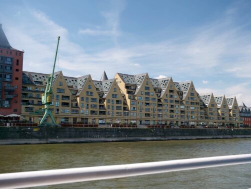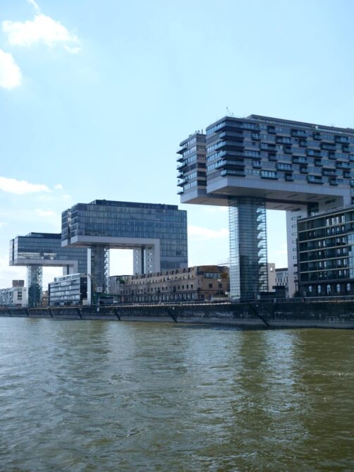 Au sud de la vieille ville de Cologne, le long du Rhin, s’étend le quartier Rheinauhafen, un bel exemple d’ancien quartier industriel réhabilité. Cet ancien quartier portuaire est devenu un quartier moderne à l’architecture audacieuse, et aux bonnes adresses tendance. Le symbole du quartier, ce sont les « Kranhäuser », trois grands bâtiments en forme de grues portuaires, qui abritent des bureaux, des appartements et des commerces. La balade sur les quais du quartier est très agréable !