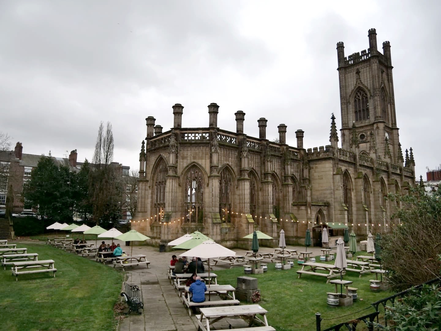 Je vous conseille d’ensuite traverser le centre-ville en direction de Ropewalks, jusqu’à la Cathédrale de Liverpool. L’ensemble de ce quartier est très animé, on y trouve de nombreux bars et restaurants (dont certains très originaux, comme le Bombed Out Church Garden & Bar, qui occupe l’extérieur d’une ancienne église bombardée !). Vous pourrez également admirer de splendides bâtiments d’archtiecture victorienne très bien préservés.
