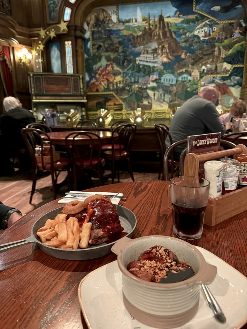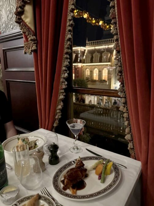 - Pour un repas chic dans un cadre cosy : le Walt’s Restaurant, sur Main Street, inspiré par les recettes préférées de Walt Disney, est vraiment une pépite cachée du parc, avec une super ambiance et un bon rapport qualité prix. Attention, à réserver à l’avance via l’application du parc.
