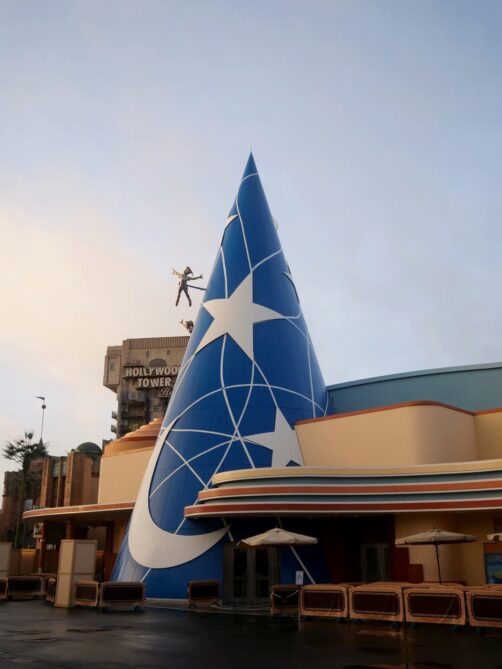 Le chapeau géant de Mickey (de Fantasia) marque l’entrée de la petite zone Toon Studio®. La zone ne possède que trois attractions, dont deux pour enfants.