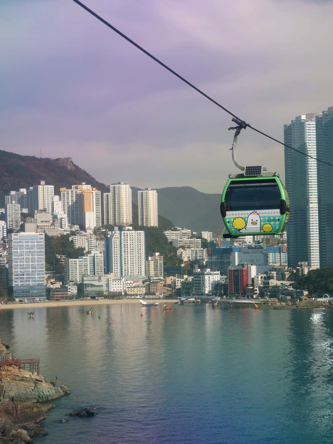 Nous avons commencé cette journée complète à Busan dans la baie de Songdo, où se trouve l’une des plus jolies plages du centre-ville. Nous y avons pris le téléphérique « Busan Air Cruise », qui offre de jolies vues sur la ville et vous emmène jusqu’à un joli point de vue sur l’eau.