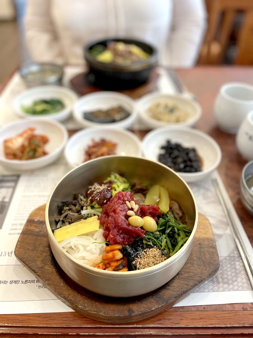 Pour le lunch, nous avons été manger la grande spécialité de Jeonju, le bibimbap (c’est ici qu’il a été inventé) chez Hankookjib, avant d’aller prendre le « dessert » au Hanok Cafe Haengwon.