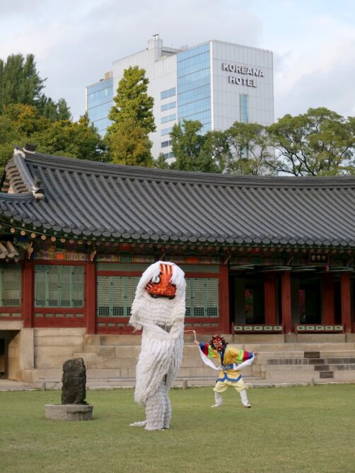 Avant de terminer cette journée avec la visite du palais de Deoksugung, nous avons fait une pause au Jeongdong Observatory, un café qui offre une superbe vue sur ce palais et sur le centre-ville de Séoul (ouvert uniquement le weekend). Dans ce dernier palais, nous sommes à nouveau tombé sur un événement particulier, une reconstitution historique de l’époque de l’Empire coréen qui nous a permis d’assister gratuitement à toutes sortes de musiques et danses coréennes !