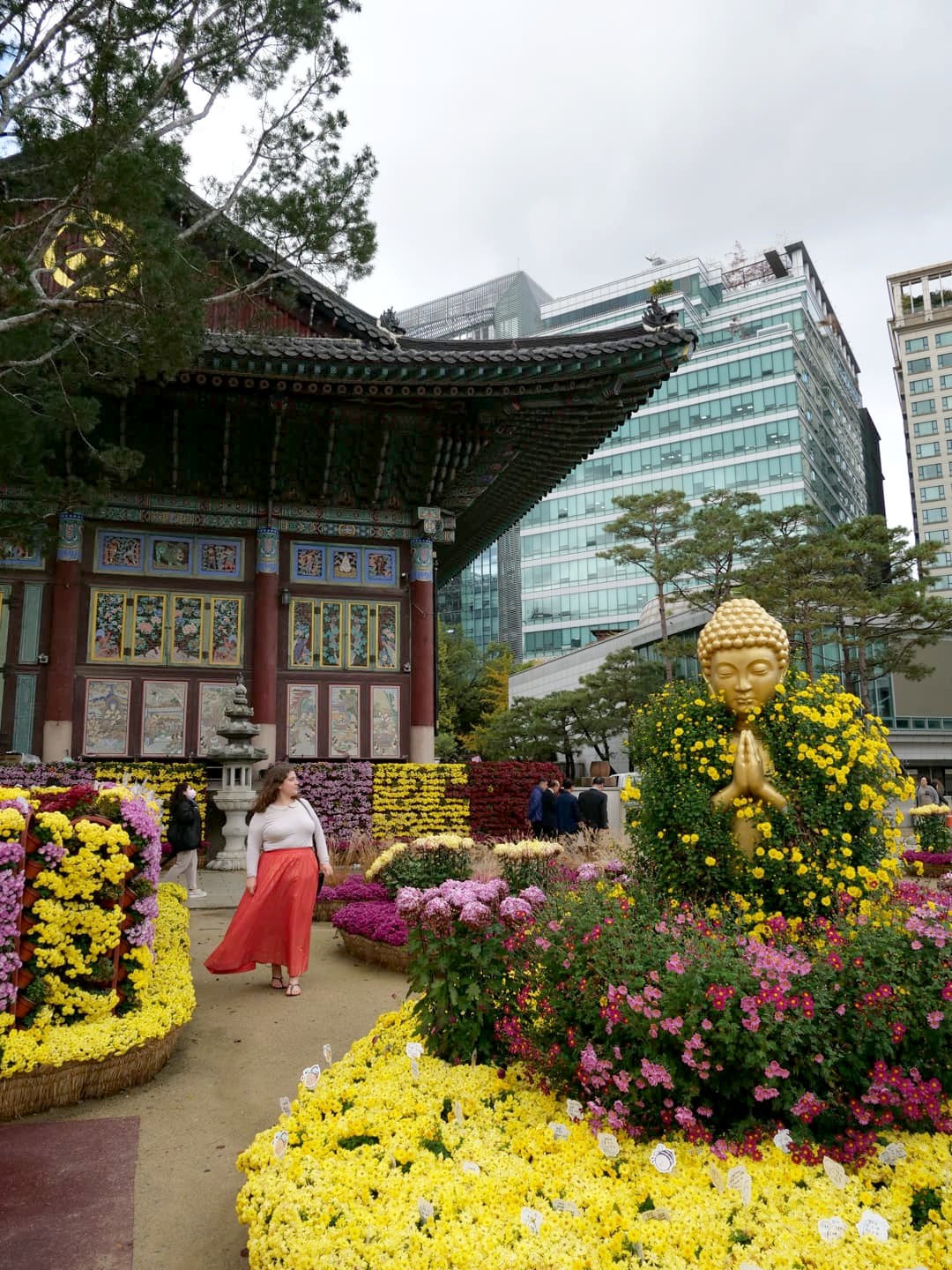 Ensuite, direction le Hanok Village de Bukchon, le plus populaire de Séoul, mais où nous avons fui tant c’était bondé… Nous avons continué à pied en direction du quartier commercial d’Insadong (avec la Insadong Cultural Street), en faisant un passage au splendide temple de Jogyesa.