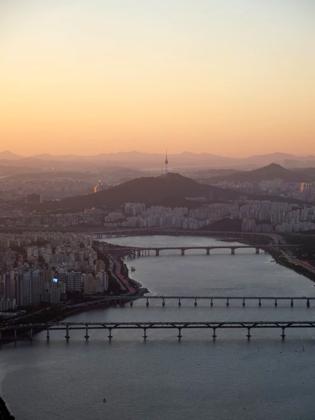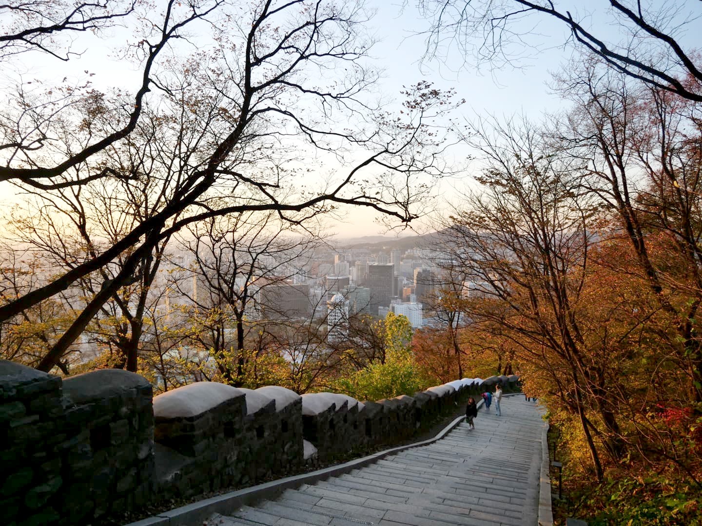 En fin de journée, nous avons pris le téléphérique vers la Namsan Tower (N Seoul) pour profiter du coucher du soleil au sommet de celle-ci, et en redescendant à pied.