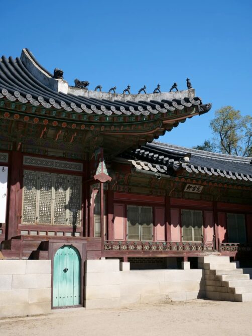 Après une pause lunch un peu foireuse (car il y avait trop de file partout), nous avons poursuivi en direction des palais voisins de Changdeokgung (le seul classé à l’UNESCO, nous y avons fait une visite guidée gratuite) et Changgyeonggung (plus calme et plus boisé).