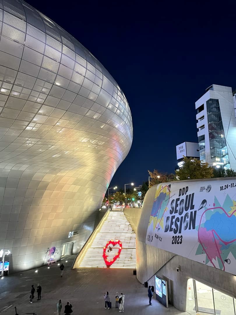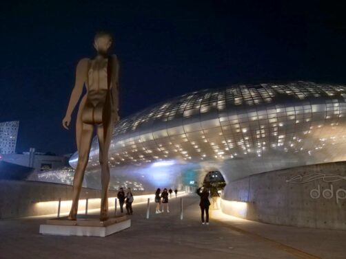 A l’autre bout du coeur animé de Séoul se trouve le « DDP », soit le Dongdaemun Design Plaza, un bâtiment design futuriste signé par l’architecte Zaha Hadid (à qui l’on doit aussi notamment le Heydar Aliyev Center à Bakou). Celui-ci abrite plusieurs expositions, dont la plupart sont gratuites, ainsi que régulièrement divers événements artistiques. C’est aussi un endroit très photogénique, de jour comme de nuit !