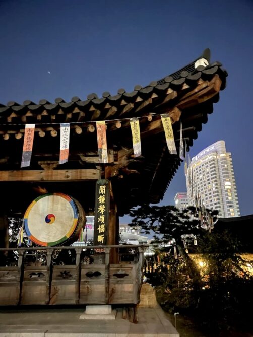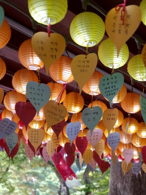 Après avoir été mangé dans l’un de ses cafés tendance (voir mon article Où manger à Séoul), nous avons également été explorer le Jinkwansa Temple, un célèbre temple bouddhiste qui se trouve juste à côté. Nous avons à nouveau eu un super timing car nous sommes tombés durant une grande cérémonie en l’honneur des morts. Une atmosphère incroyable.