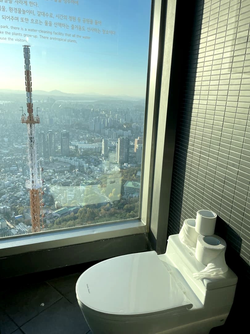 La visite commence avec les projections sur les quatre saisons à Séoul, plutôt sympa. Une fois au sommet, vous trouverez aussi un café, un restaurant, une boutique et même des incroyables toilettes avec vue ! A nouveau, le point négatif ce sont les reflets sur les vitres vu que tout est en intérieur.