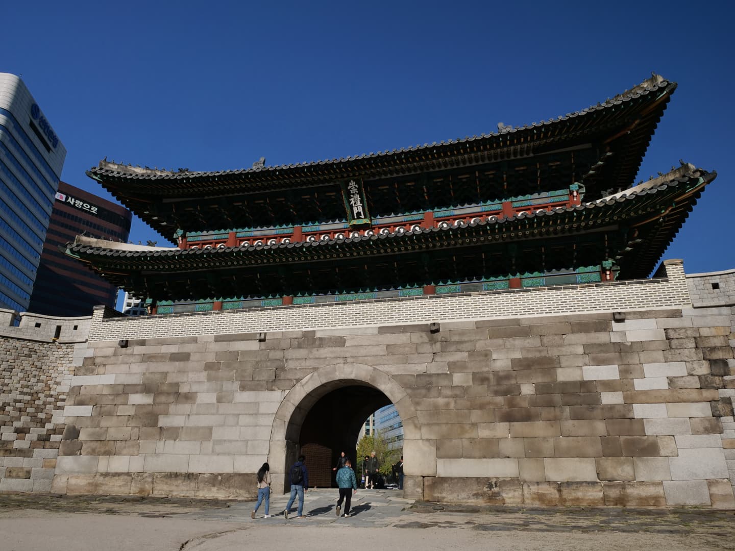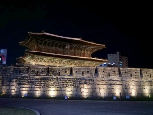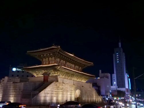A voir également : la porte de Sungnyemun, près du marché de Namdaemun, la plus grande porte de la ville, qui est gardée en journée.