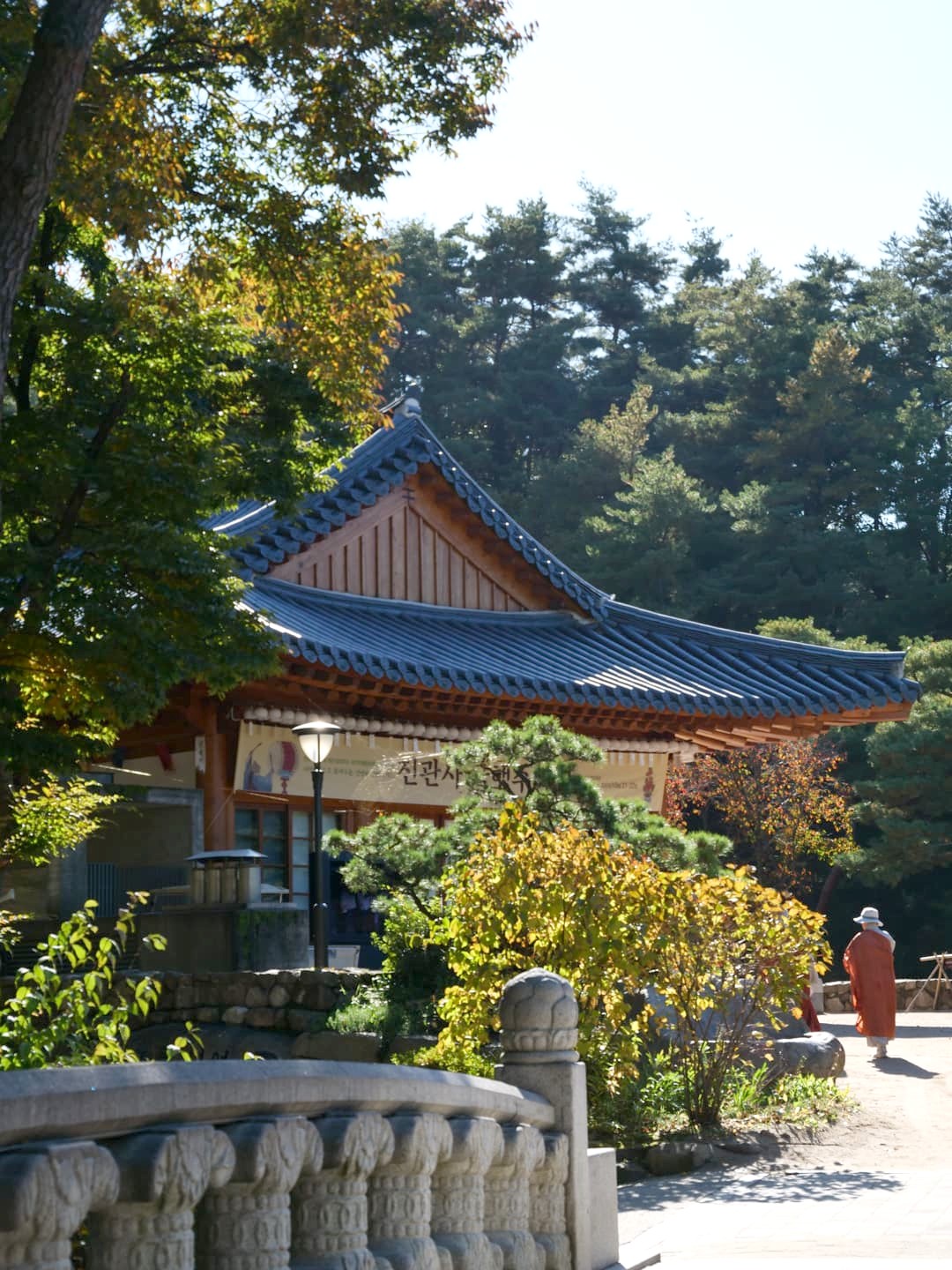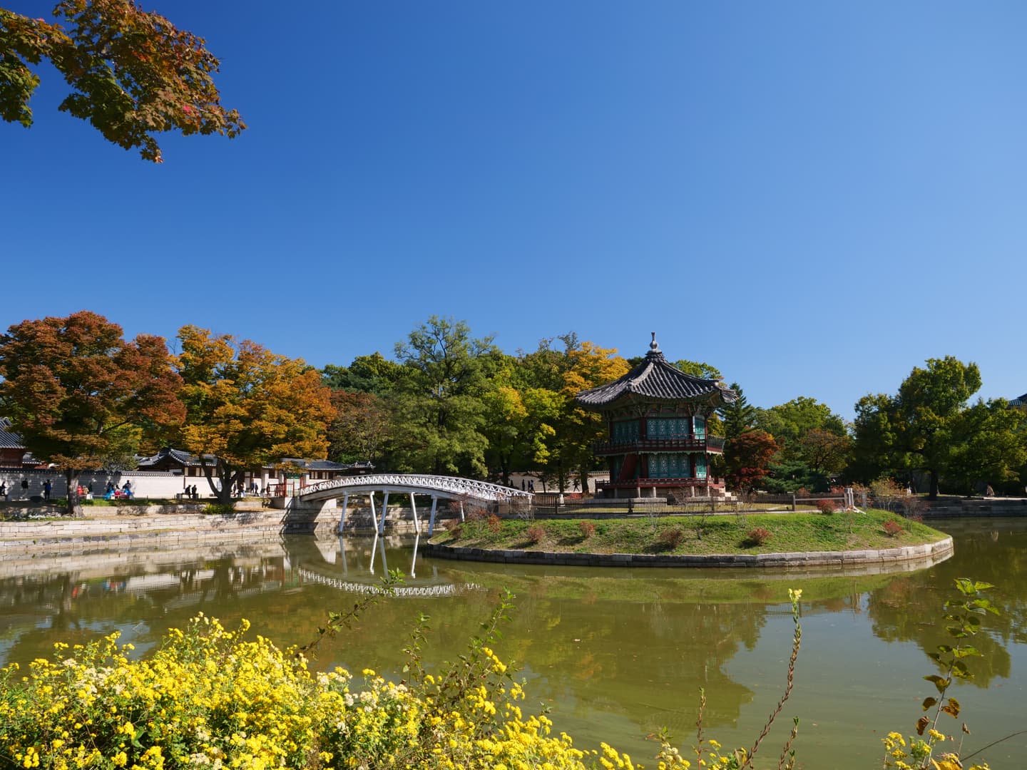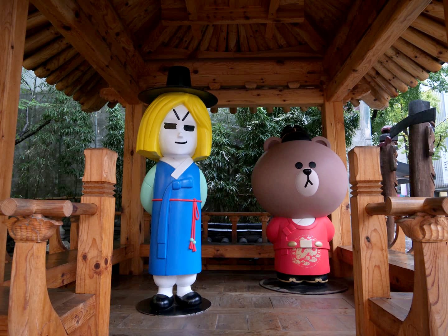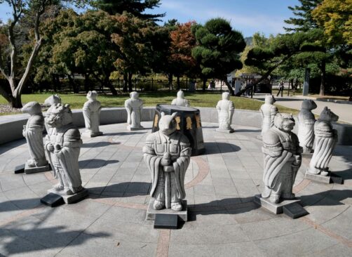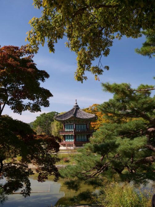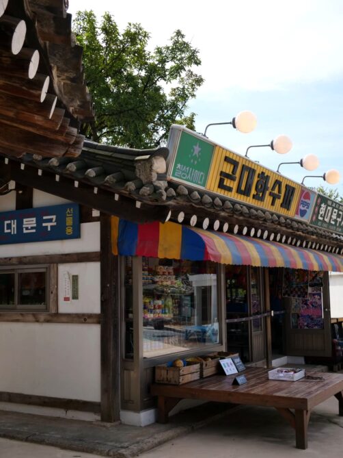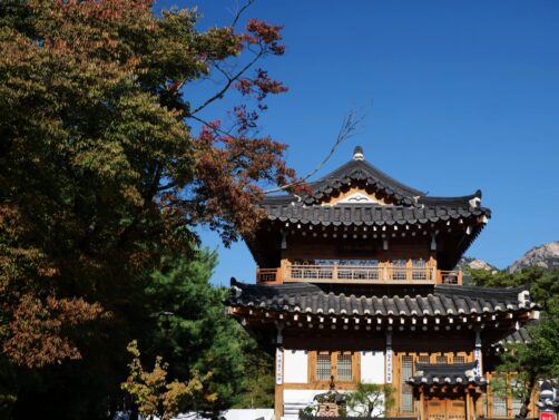 Ne manquez pas de vous rendre jusqu’au fond du complexe pour admirer le joli pavillon au milieu d’un petit étang, très photogénique. Il est possible de sortir du complexe au niveau du National Folk Museum, ce que je vous recommande. Même sans visiter l’intérieur du musée, cela vous permettra de découvrir gratuitement l’exposition extérieure qui reconstitue notamment d’anciens bâtiments coréens au style très rétro.