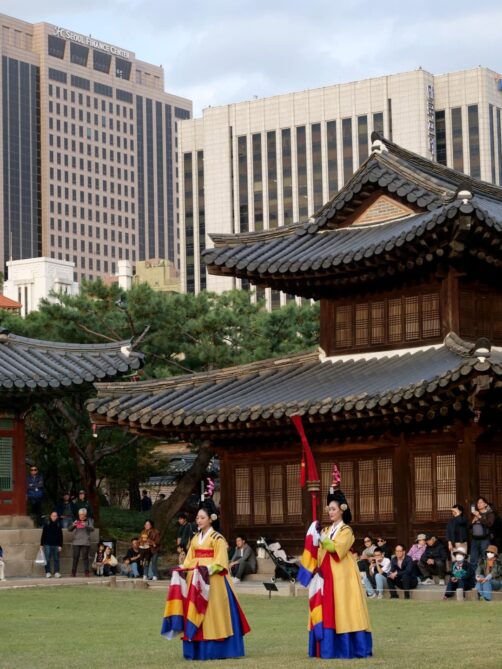 On a eu beaucoup de chance car notre visite est tombée en plein un événement de reconstitution historique de l’époque de l’Empire coréen. On a donc pu voir gratuitement toutes sortes de danses coréennes traditionnelles : ça s’appelle être au bon endroit au bon moment !