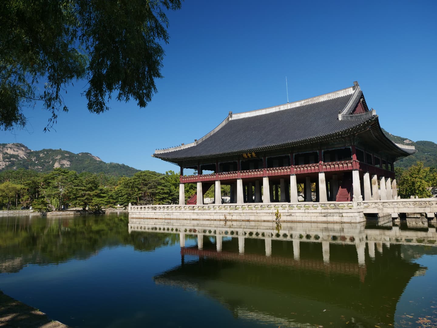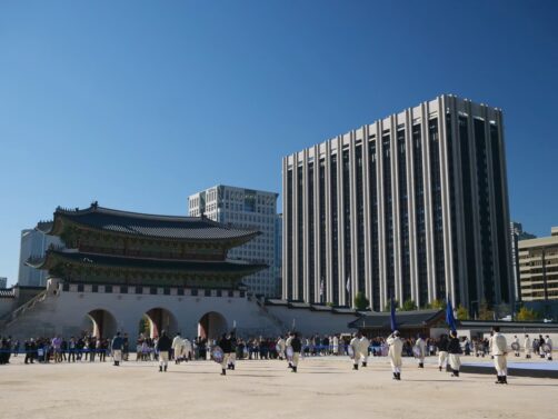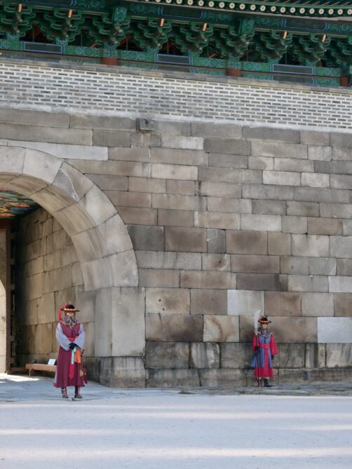 Le plus grands et le plus ancien des palais de Séoul est le palais de Gyeongbokgung. C’est malheureusement aussi celui où il y a le plus de touristes. Mais comme le complexe étant immense, il suffit de s’éloigner un peu de la zone la plus proche de l’entrée pour pouvoir profiter d’un cadre un peu plus calme.