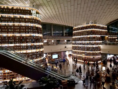 La statue se trouve juste à côté de l’immense centre commercial COEX, connu notamment pour sa Starfield Library, l’une des bibliothèques les plus « Instagrammables » au monde !