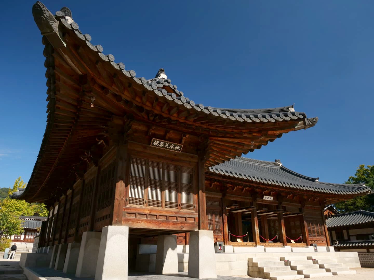 Depuis le palais de Changdeokgung , il est possible de passer directement au palais voisin de Changgyeonggung sans devoir repasser par la sortie/entrée principale, ce qui permet d’éviter de faire des aller-retours inutiles.