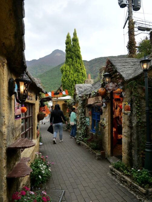 Yufuin est aussi très connu pour son Yufuin Floral Village, un « village » (plutôt quelques rues de magasins façon parc d’attractions) inspiré par l’univers des studios Ghibli. Pas incontournable, mais assez insolite quand même ! D’ailleurs, vous trouverez aussi un énorme magasin avec les produits dérivés Totoro et compagnie, dans la rue principale de Yufuin (Yunotubo Street).