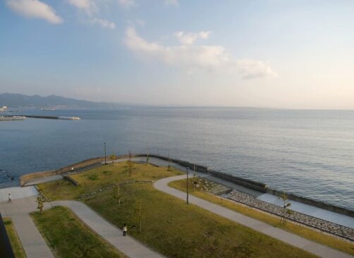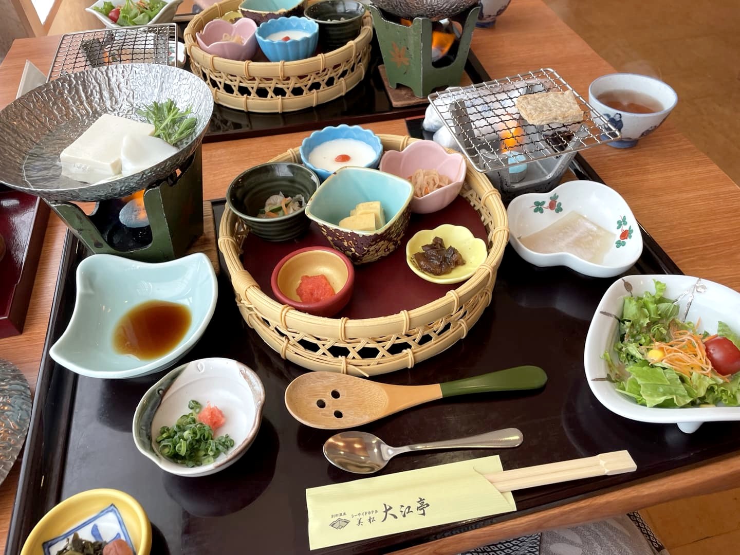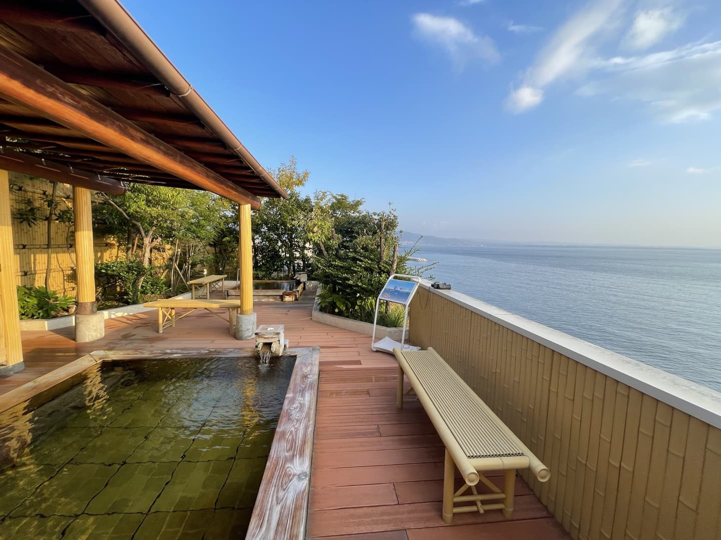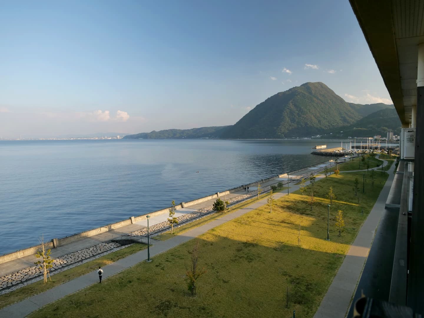 Nous avons séjourné face à la mer dans un ryokan au charme assez rétro, le Seaside Hotel Mimatsu Ooetei. Il ne paie pas de mine de l’extérieur, mais je l’ai choisi pour son excellent rapport qualité-prix ainsi que pour ses jolis bains extérieurs sur le toit, avec vue sur la mer. Ceux-ci sont séparés par sexe et sont vraiment super agréable !