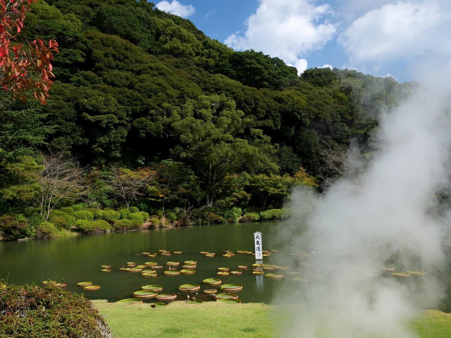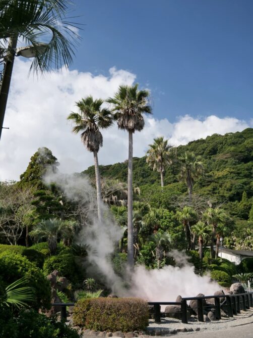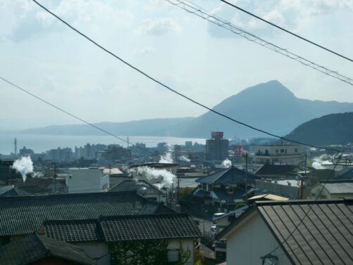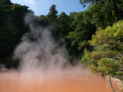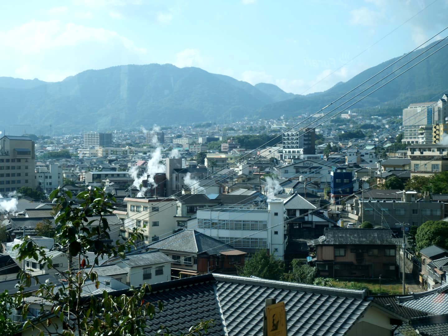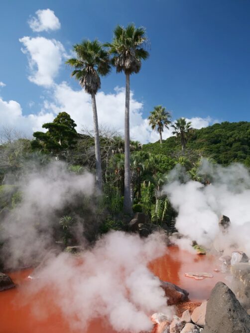 C’est à Beppu, station thermale côtière, que l’on trouve la plus grande concentration de sources chaudes au Japon : il y en a plus de 3000 dans la ville ! C’est bien simple, quand on se trouve dans les hauteurs de la ville, on la voit littéralement bouillonner avec les fumées des sources chaudes.