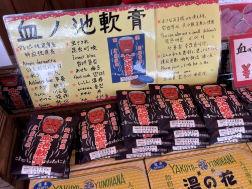 Dans chaque Enfer, vous verrez qu’on peut aussi acheter pas mal de produits créés pour profiter des bienfaits des différentes eaux. Crème apaisante, sels de bain, produits de soins, etc. Je dois dire que j’ai ramené pas mal de petits souvenirs !