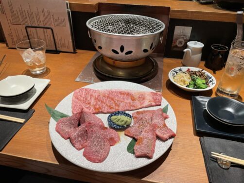 Ce quartier des affaires, plus discret que Roppongi ou Ginza, possède un bon mélange d’adresses haut de gamme et d’autres plus abordables. On y a notamment mangé un excellent yakiniku (BBQ japonais) premium chez Yakiniku Honma. Ici, vous avez le choix entre plusieurs types de wagyu d’exception… j’en salive encore !