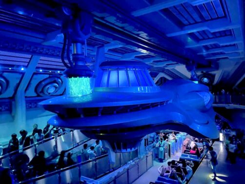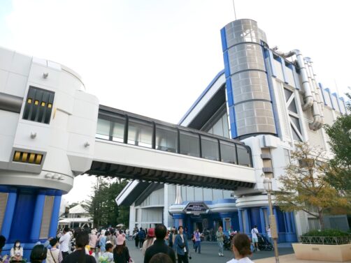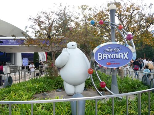 On termine le tour de Tokyo Disneyland à Tomorrowland, la fameuse zone rétro-futuriste que l’on retrouve aussi dans plusieurs autres parcs Disney. On y retrouve les grands classiques que sont Space Mountain (version très sympa) et Star Tours – The Adventures Continue (très peu populaire ici donc ça va vite). On y trouve aussi deux attractions spécifiques à ce parc : The Happy Ride with Baymax, très populaire auprès des plus petits, et Monsters, Inc. Ride & Go Seek, basé sur le film Monstres et Cie.