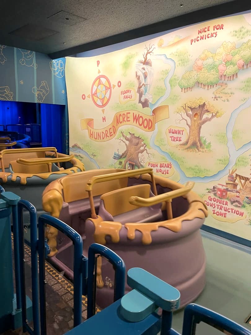 Au niveau de l’ordre dans lequel faire les attractions, comme le parc n’est pas très étendu, je vous recommande de vous laisser porter par vos réservations si vous en avez, et entre chacune de celles-ci par les attractions où il y a le moins de monde, sachant que les attractions à privilégier dès le matin avant que les files augmentent, c’est surtout Enchanted Tale of Beauty and the Beast (mais vraiment, privilégiez le pass payant si vous avez le budget), Pooh’s Hunny Hunt (on a commencé par là), Splash Mountain, Big Thunder Mountain, Haunted Mansion et Monsters, Inc. Ride & Go Seek. On a finalement rarement fait autant d’attractions en une matinée mais il faut vraiment être très organisé et rapide à l’arrivée pour que ça fonctionne !