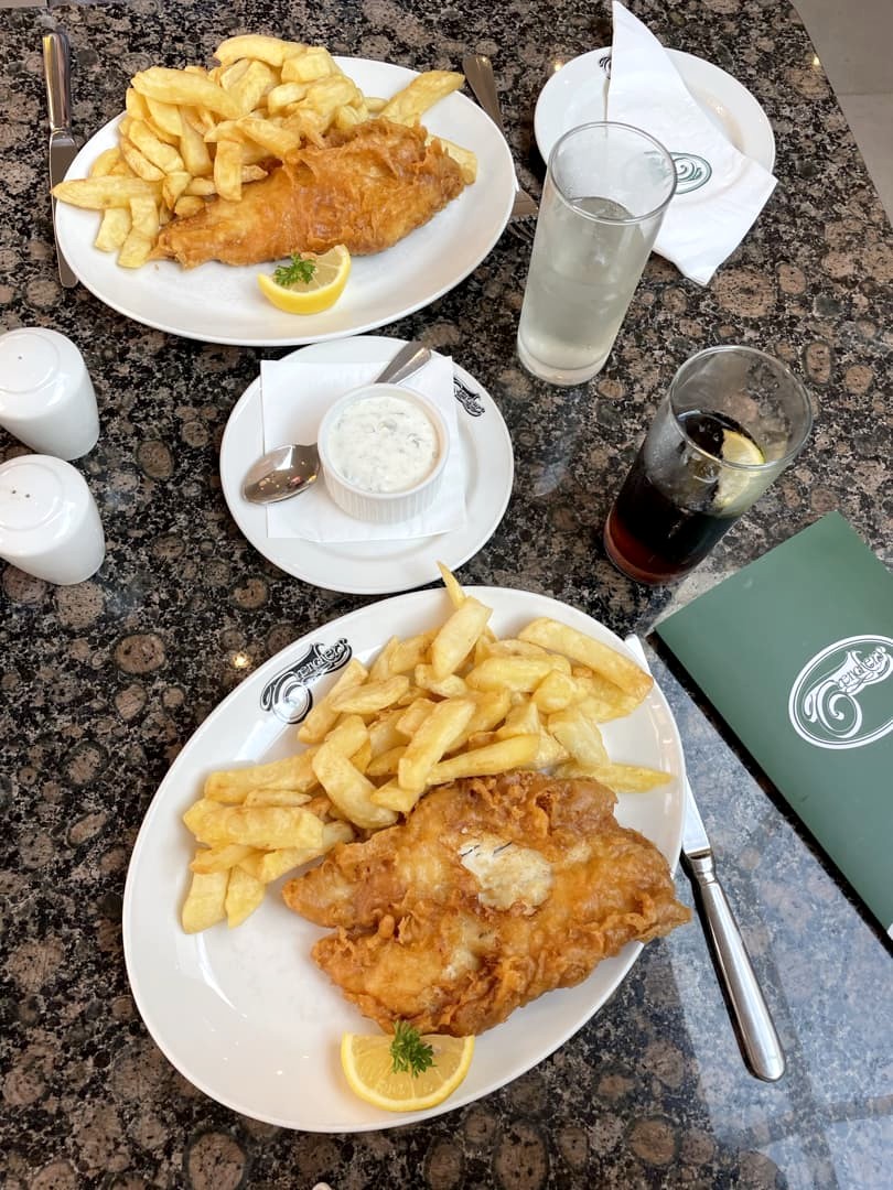 Mais c’est de l’autre côté de la Esk River que se trouve le centre-ville. Comme il s’agit d’un port de pêche, Whitby est particulièrement réputée pour ses restaurants de poissons et de fruits de mer. Nous avons mangé chez Trenchers, une institution locale qui a d’ailleurs gagné le prix du meilleur fish & chips du Royaume-Uni aux National Fish & Chips Awards (évidemment que ça existe !) en 2019. Leurs fish & chips sont évidemment excellents, et vous pouvez choisir le type de poisson que vous voulez.