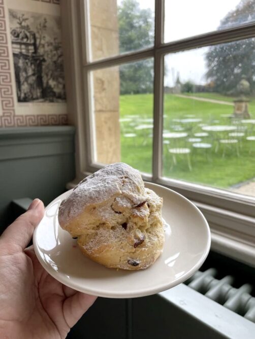 Vous trouverez également plusieurs cafés et restaurants sur place. On a mangé dans celui qui se trouve dans le château-même, le Fitzroy Café. Le cadre est mignon, c’est un self-service assez cher mais avec pas mal de choix. On y a dégusté une excellente « veggie pie » et notre premier scone d’une longue série (plutôt bon).