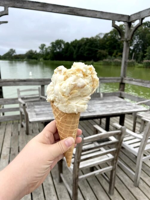 Durant notre balade dans les jardins, on a aussi pris une glace à la « clotted cream » (excellente !) dans leur café en bord de lac, le Boathouse Café. Vous trouverez également à l’entrée du domaine un magasin qui vend notamment les produits du domaine (notamment de la viande) et une belle sélection de produits locaux : il mérite lui aussi une petite visite !