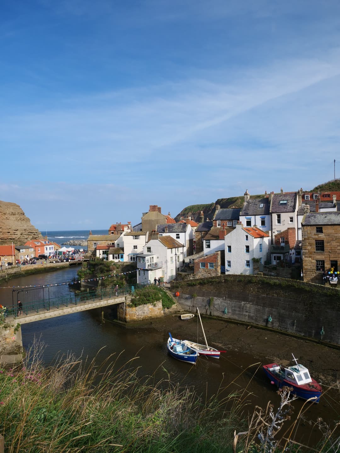 Si vous recherchez le calme, je vous recommande de loger dans l’un des petits villages pittoresques du parc, comme Helmsley ou Hutton-le-Hole (où nous avons séjourné). Si vous préférez une ambiance un peu plus animée et surtout avec plus de choix pour manger le soir (le désavantage des petits villages), la ville de Whitby, sur la côte, est aussi une très bonne option.