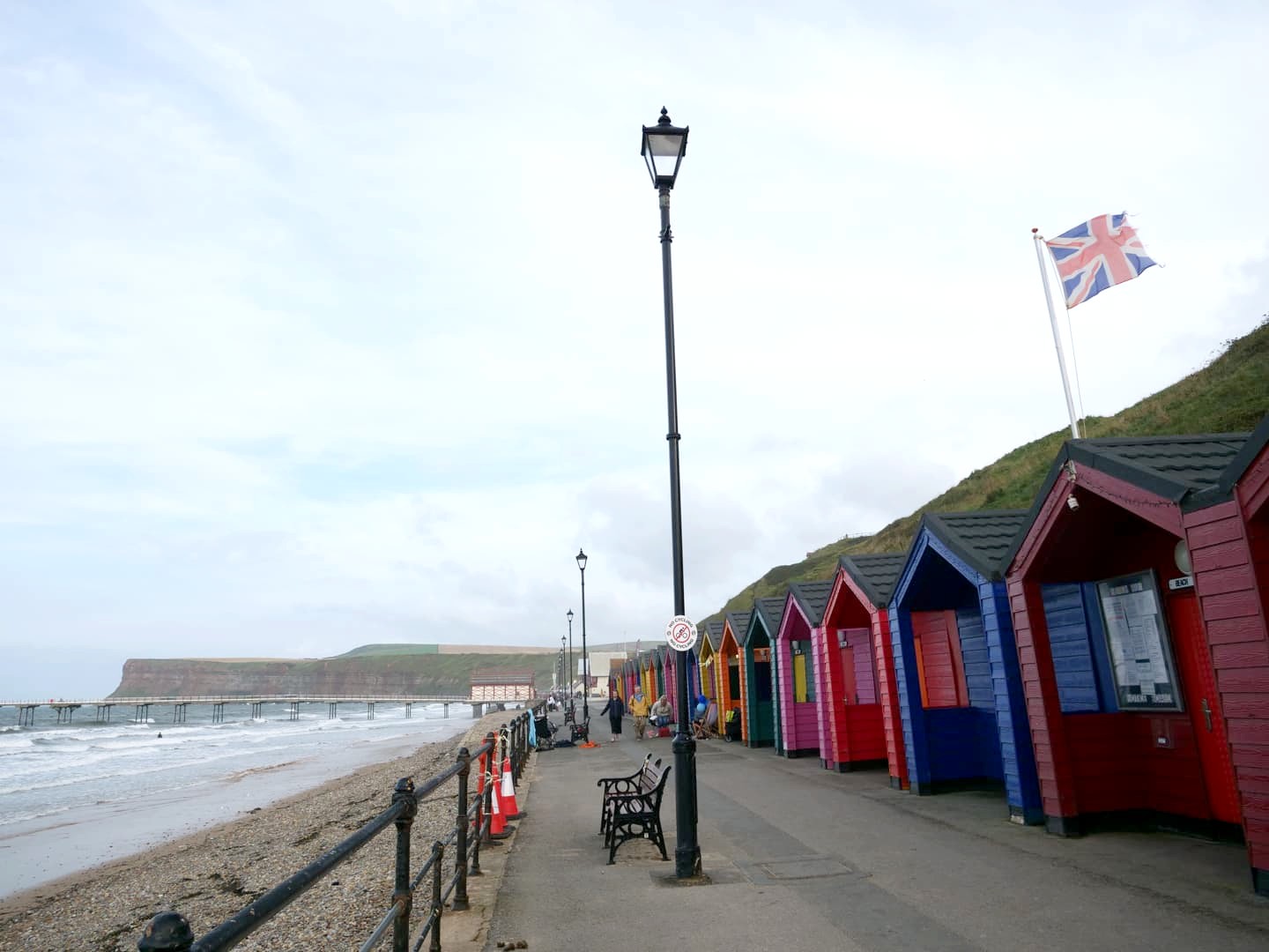 Après Whitby, nous avons continué à longer la côte jusqu’au petit village de Staithes. Ce petit village de pêcheurs est l’un des plus pittoresques du Yorkshire. J’avais prévu d’y faire un arrêt notamment pour aller prendre un petit quatre-heure à la Dotty’s Vintage Tearoom, mais à l’arrivée, nous nous sommes rendus compte que nous étions tombés durant un weekend de fête. C’était bondé partout !