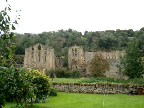 Nous avons ensuite fait une randonnée (voir le tracé ici) autour d’une autre abbaye cistercienne, l’abbaye de Rievaulx, datant elle aussi du 12ème siècle. L’abbaye vaut le coup d’œil (sa visite est payante – il y a aussi un petit musée), mais la randonnée un peu moins : on traverse les collines boisées qui l’entourent, sans vraiment de vues. Pourtant, il s’agit de l’une des randonnées phare du parc d’après leur site !