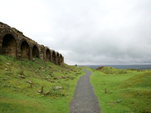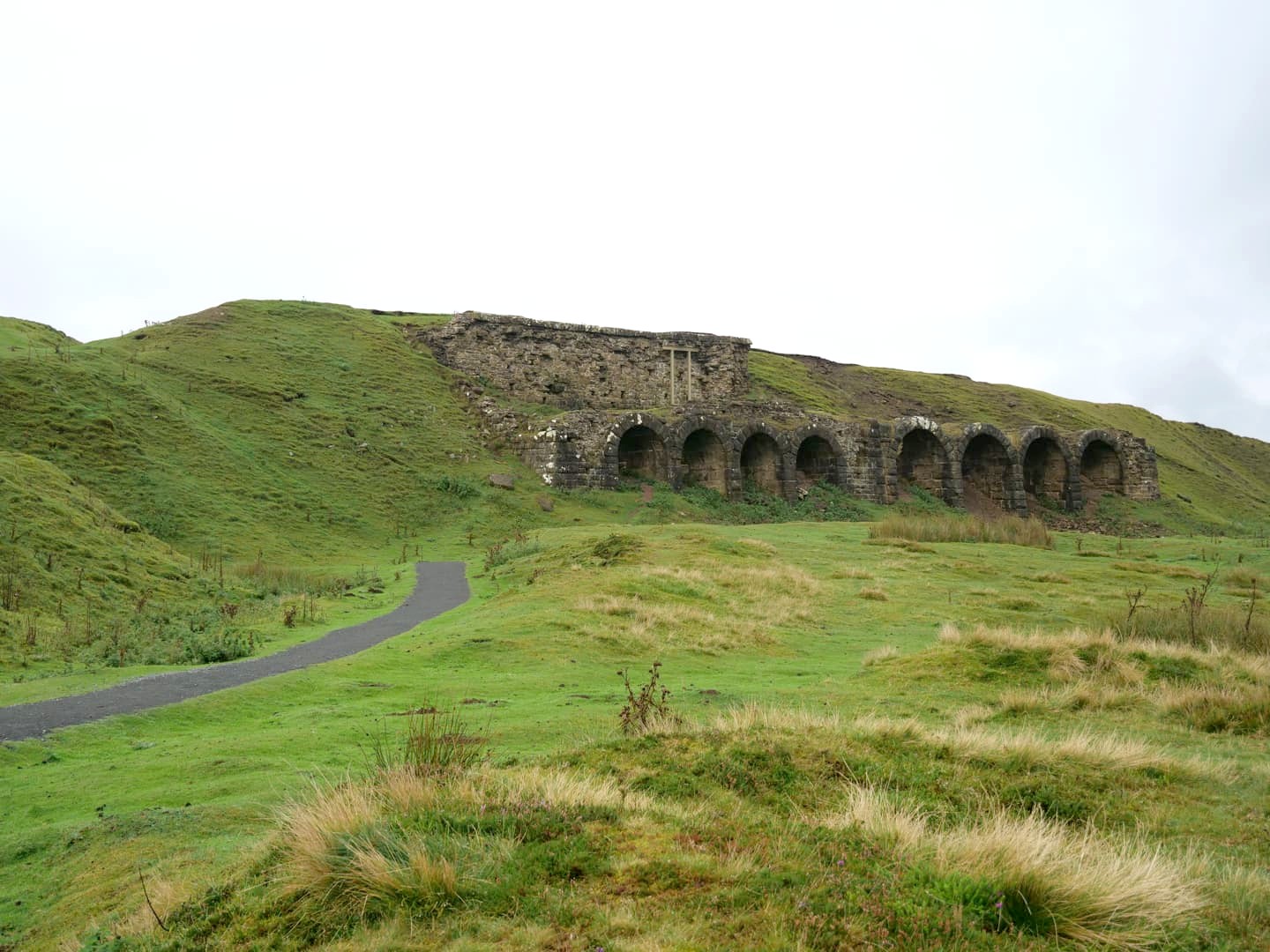 Nous avons d’abord emprunté la petite route partant en direction de Rosedale Abbey, qui nous a emmené sur le site de Bank Top Kilns, vestiges de l' »iron rush » (ruée vers le fer) que la région a connu. On peut y voir les ruines d’un ancien site d’extraction de minerai, et les anciennes voies ferrées ont aujourd’hui été transformées en sentiers de randonnée. Le site offre aussi de superbes vues sur les alentours.